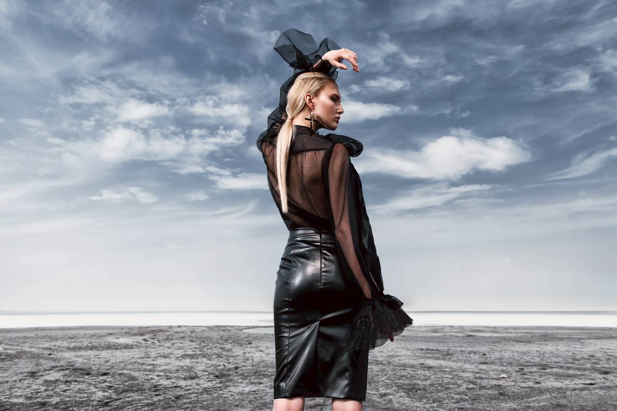 想要展現個性,皮衣是不可或缺的單品。一件黑色皮衣外套搭配黑色皮裙,能打造出強烈的視覺效果,展現自信與霸氣。若想讓造型更具層次感,可以內搭一件簡單的白色T恤或黑色高領上衣,這套穿搭很適合參加派對或音樂節,讓妳成為全場焦點。