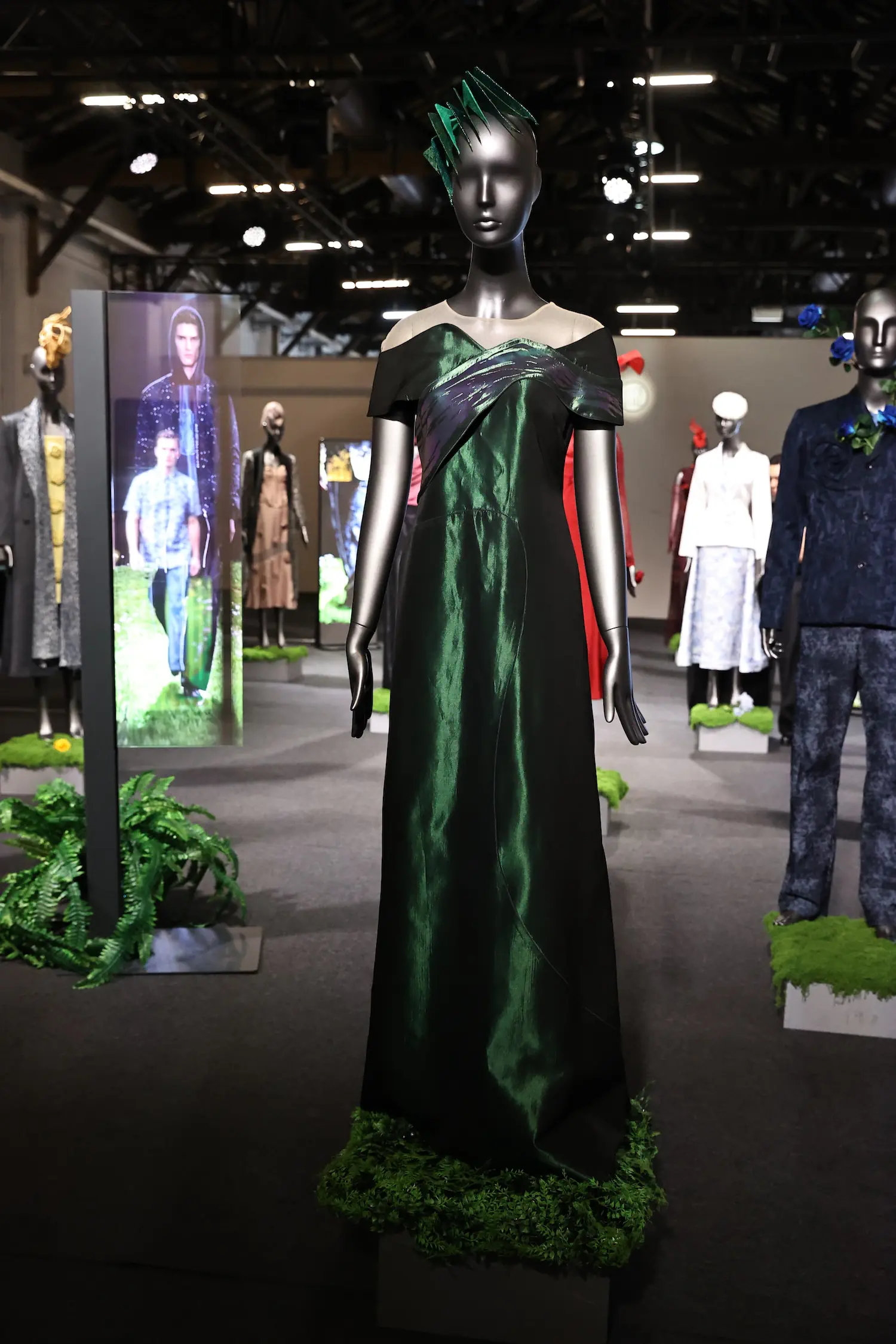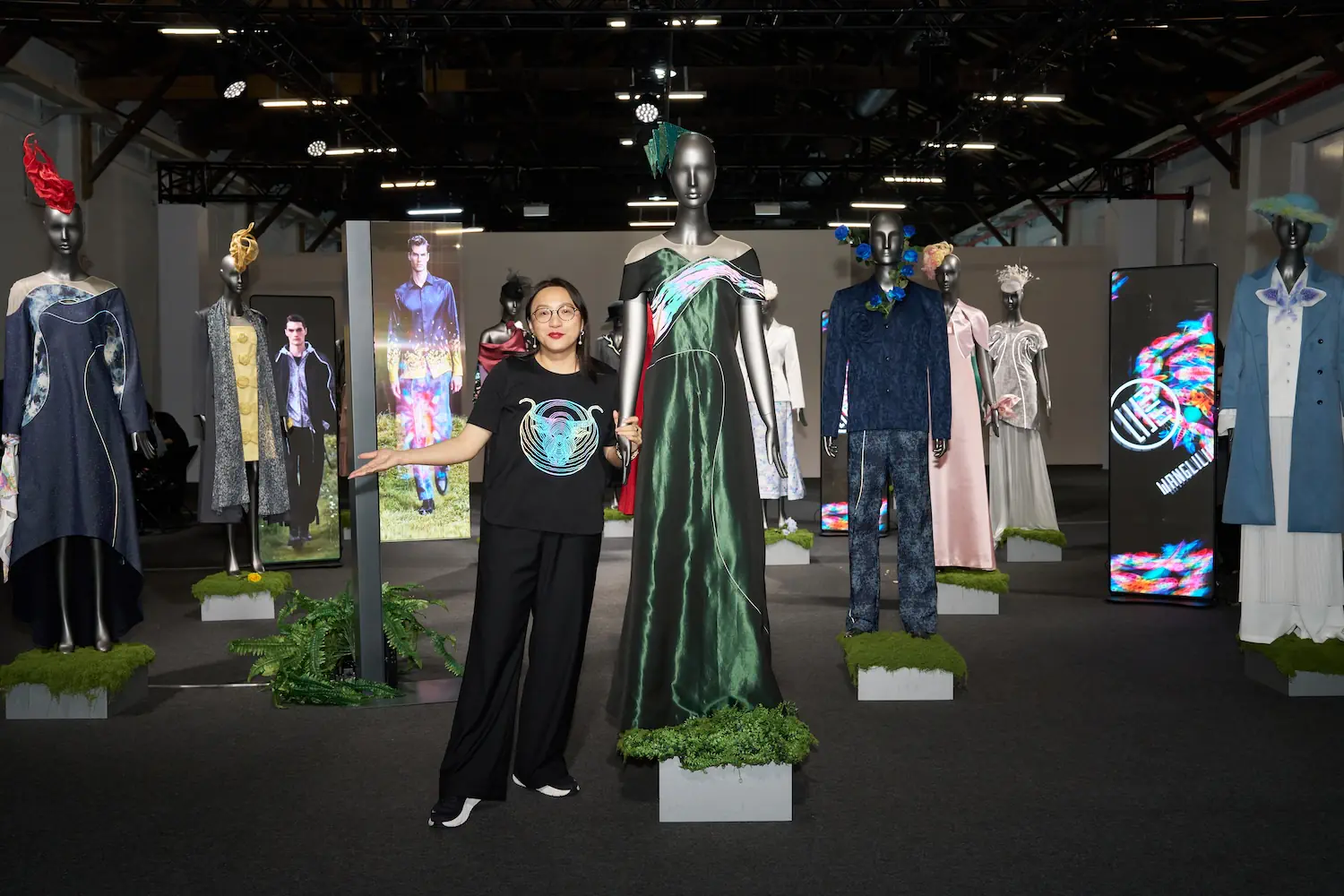 為了完整這場自然敘事,汪俐伶本季再度與帽飾設計師Winnie Lin(林君孟)合作,透過其雕塑般的工藝為造型增添戲劇性層次。在科技呈現上,結合友達光電與達運精密的顯示技術,以及綠創新科技的低能耗電子紙(E-Paper),將自然光影轉化為動態的視覺經驗,讓微觀紋理與宏觀地貌得以同時被觀看。