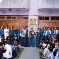 位於臺北信義路巷口的洪麗芬工作室,整棟公寓碧玉綠磁磚滿佈,小院裡梔子花和玉蘭花在向晚鬧區的僻靜一角,飄出若有似無的芬芳。鏽鐵片焊在破碎水泥牆面、嵌在建築的稜稜角角,落地玻璃門上的鋼筋竄生,以堅硬而柔軟的姿態迎接每一個人。一如洪麗芬喜愛的湘雲紗,外型硬挺卻輕柔無比;也似洪麗芬,總在兩相對比之間優遊,溫柔地拾起傳統工藝再揉和個人創意的衣著設計,目光堅定、無畏無懼地踏上國際的舞台。